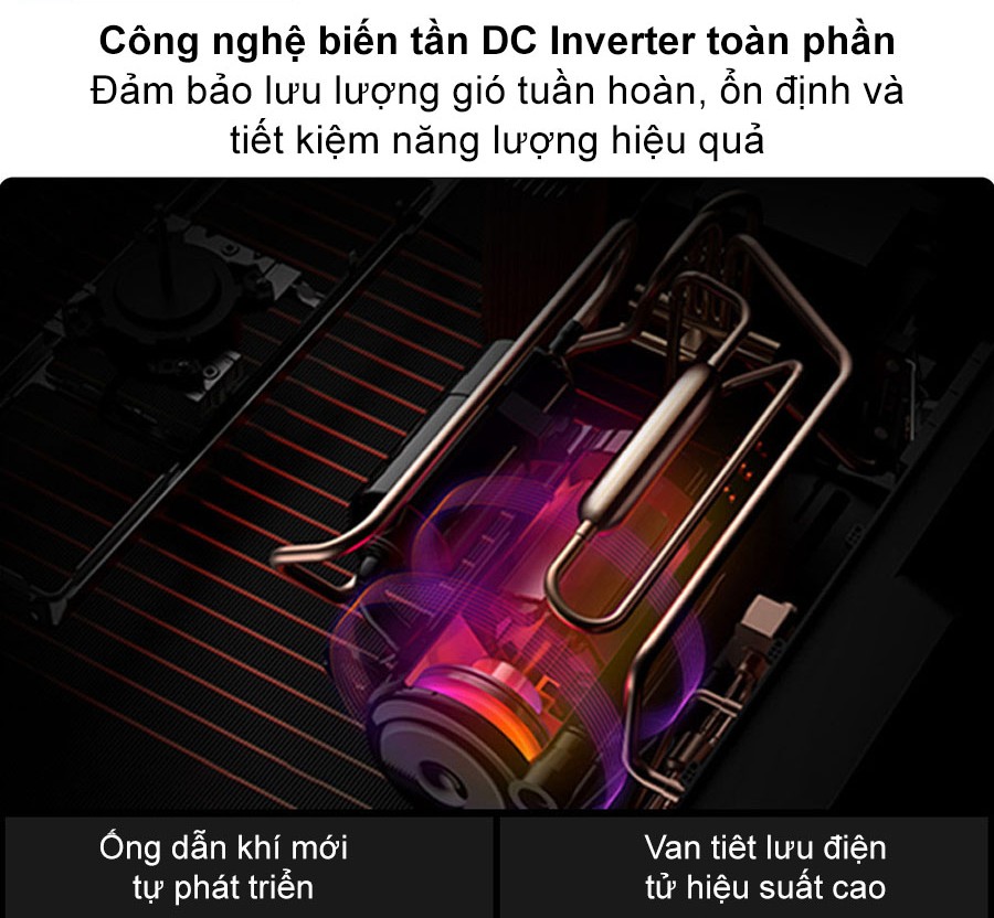Với máy nén biến tần DC và hệ thống đường dẫn khí được nghiên cứu và phát triển độc quyền, chiếc điều hòa này đảm bảo luồng gió tuần hoàn ổn định và bền bỉ theo thời gian. Kết hợp với van tiết lưu điện tử hiệu suất cao, sản phẩm mang lại hiệu quả làm mát và sưởi ấm tối ưu, tiết kiệm điện năng và đảm bảo sự bền bỉ.