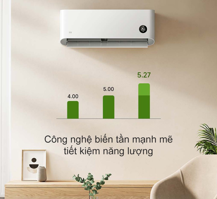 Điều hòa Xiaomi Inverter KFR-35GW/R1X1 áp dụng công nghệ biến tần DC, với chỉ số APE lên tới 527, đảm bảo hiệu quả tiết kiệm năng lượng vượt trội. Sản phẩm đạt tiêu chuẩn tiết kiệm điện mới, giúp tiết kiệm tới 205kWh điện mỗi năm so với các dòng điều hòa tiêu chuẩn mức ba.