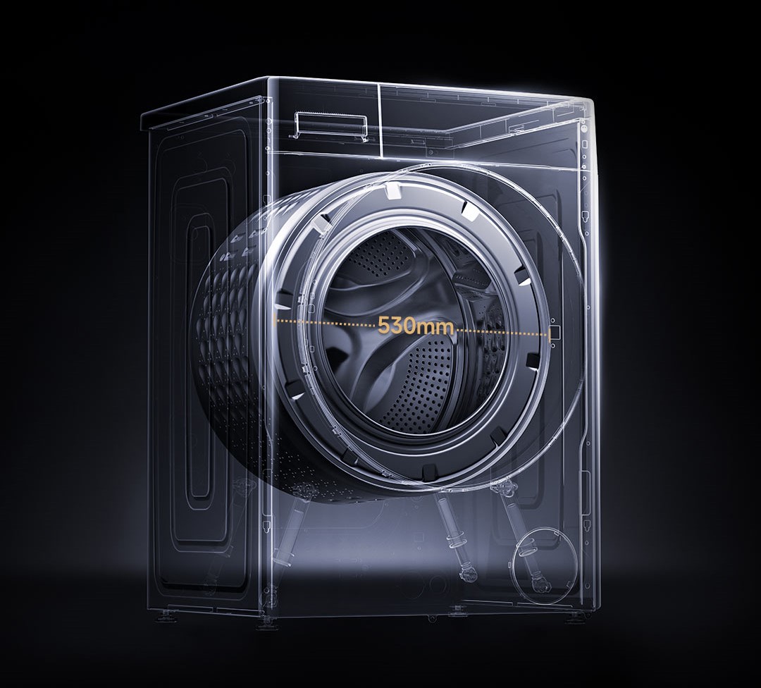 Với đường kính lồng giặt lên tới 530mm, giúp bạn có thể thoải mái trong việc để đồ và lấy đồ từ lồng giặt.