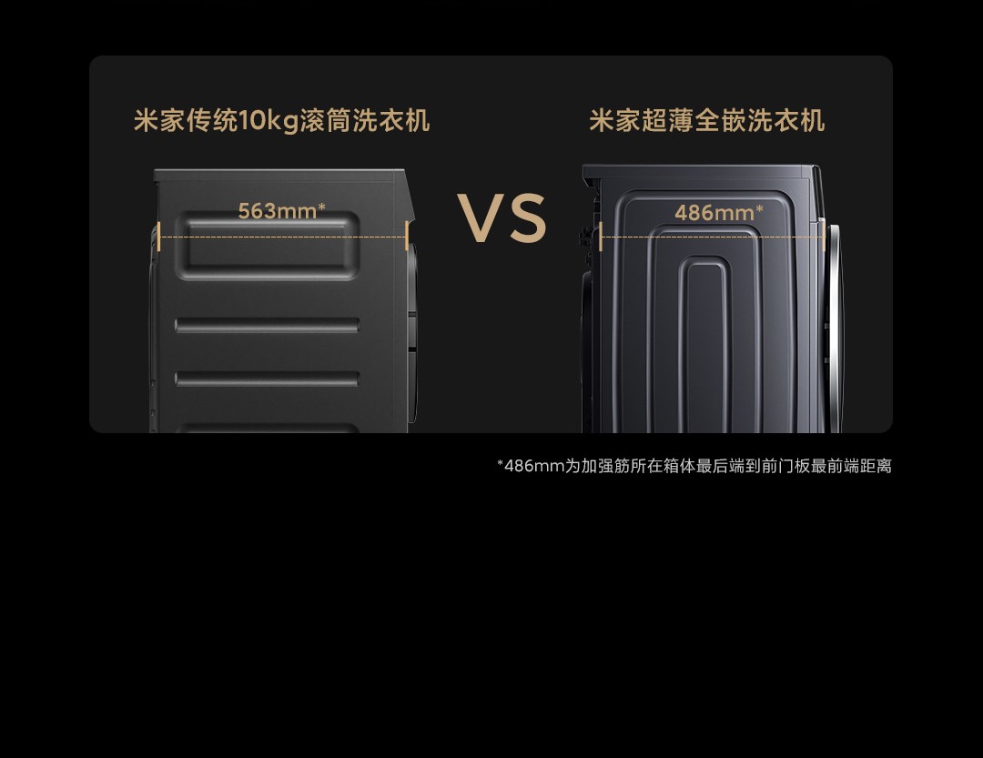 Máy giặt sấy Xiaomi Mijia MJ301 Pro được xem là tác phẩm nghệ thuật mới của Xiaomi với thiết kế mỏng và bạn có thể thể tích hợp để vào nhiều không gian khác nhau. Thân máy có kích thước chỉ 486mm mỏng hơn đến 77mm so với máy giặt truyền thống, để ẩn phía trong tủ một cách tự nhiên hài hòa không tốn diện tích.