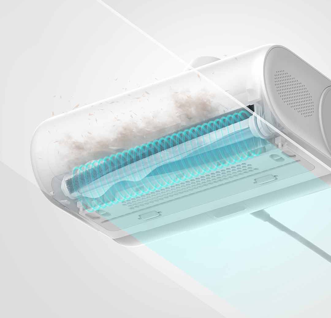 Máy hút bụi diệt khuẩn UV Mijia MJCMY01DY được trang bị động cơ độc lập kết hợp cùng con lăn quay tốc độ cao với tần số rung lên đến 10000 lần/ phút, giúp đập và loại bỏ hiệu quả các loại mạt bụi ẩn. Bên cạnh đó, đầu bàn chải điện mềm mại với khả năng quay đến 2300 vòng/ phút giúp len lỏi vào tận sâu bên trong cấu trúc vải, quét sạch tận gốc bụi bẩn và mạt ẩn. Vì sử dụng bàn chải lông mềm nên máy sẽ nhẹ nhàng len lỏi vào các khe hở của vải mà không làm hỏng bề mặt vải, do đó người dùng có thể an tâm về vấn đề này.