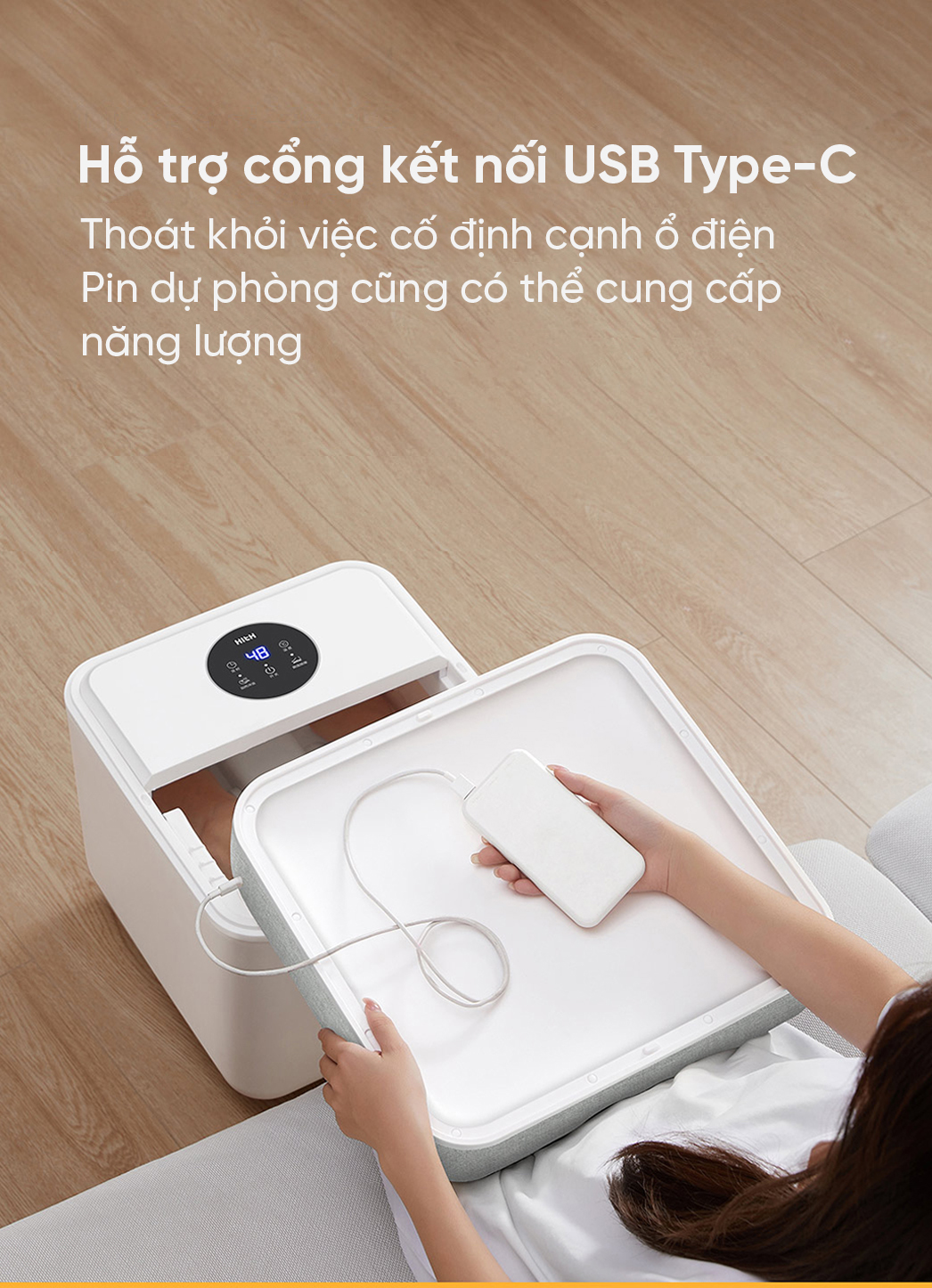 Máy massage chân Xiaomi HITH ZMZ-X5 hỗ trợ cổng sạc Type-C giúp sạc nhanh chóng và sạc bằng pin dự phòng một cách tiện lợi.