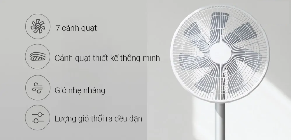 Nếu quạt điện truyền thống thông thường chỉ được thiết kế 3 cánh hoặc 5 cánh quạt Quạt xiaomi Mi Smart Fan Gen 2S có tới 7 cánh quạt, lượng gió thổi ra đều đặn, mềm mại và nhẹ nhàng. Độ cong của các lưỡi quạt cũng được tính toán kỹ lưỡng, tối ưu hiệu quả, gia công chế tác công phu giúp giảm tác động của khối không khí lên bề mặt cánh quạt, tạo luồng gió tự nhiên giúp loại bỏ một yếu tố độc hại tiềm ẩn trong không khí, tốt cho hệ hô hấp, giảm bớt những dấu hiệu của bệnh tim mạch